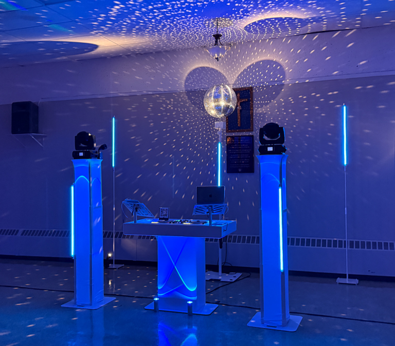We also offer a nostalgic mirror ball which will help to create a perfect whimsical experience for your first dance or high-energy disco party ($150 added to either PortaParty package above). LED Movers can also be added to take you event up a notch and give it a full dance club effect ($150 added to either PortaParty package above). Add Disco Ball & Movers for your event at a discounted rate of $250. You save $50!
